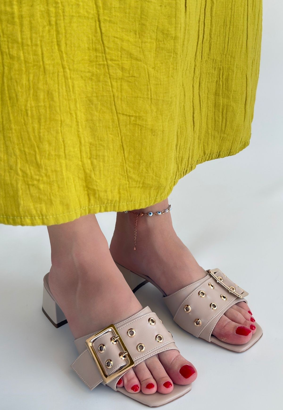 • Ciey Bej Cilt Topuklu Terlik