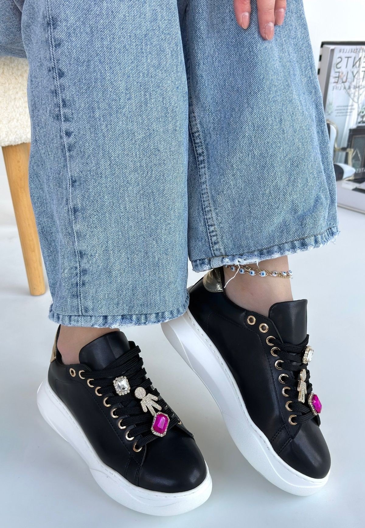 • Gane Siyah Cilt Bağcıklı Spor Ayakkabı