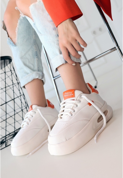Kadın Spor Chris Beyaz Cilt Siyah Detaylı Bağcıklı Spor Ayakkabı