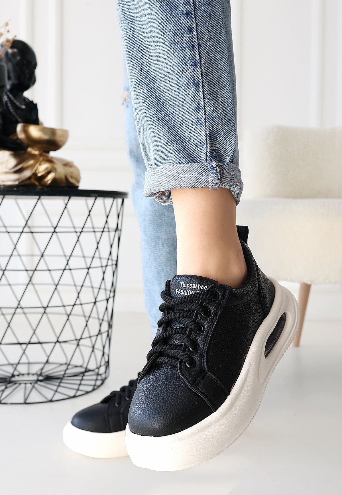 Chris Siyah Cilt Bağcıklı Spor Ayakkabı