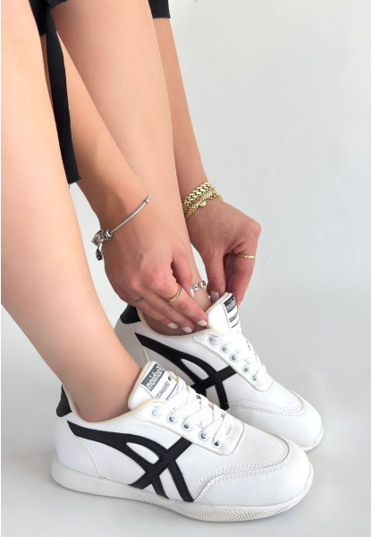 Kadın Spor Finna Siyah Cilt Bağcıklı Spor Ayakkabı
