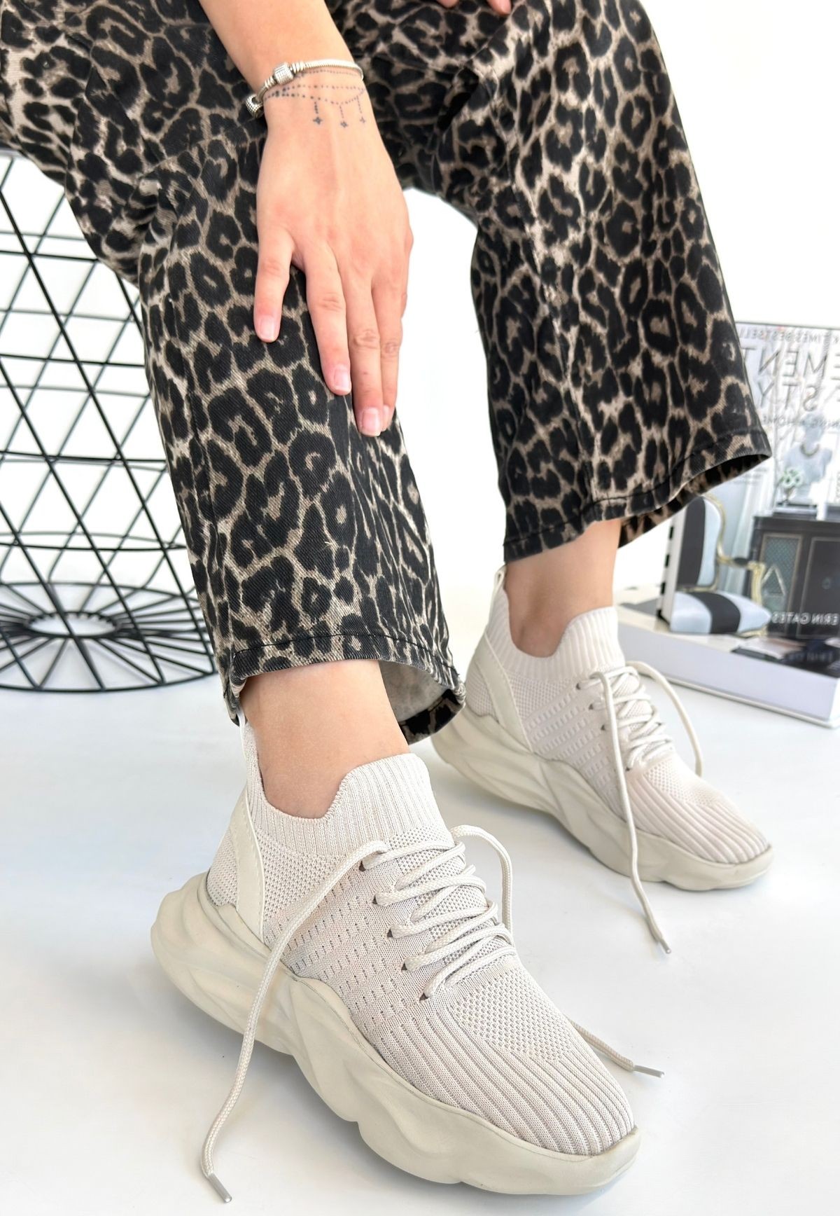 Kadın Spor Henta Bej Triko Bağcıklı Spor Ayakkabı