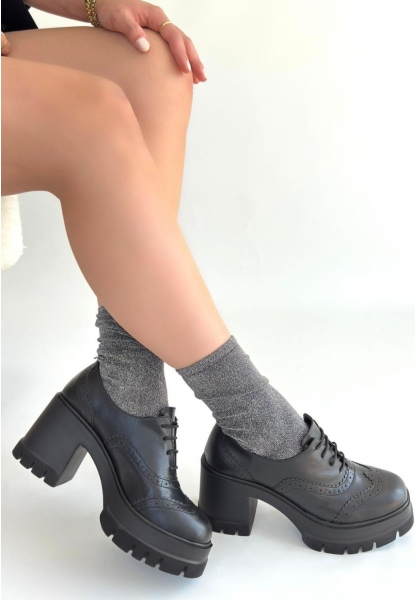 Leope Siyah Cilt Bağcıklı Spor Ayakkabı