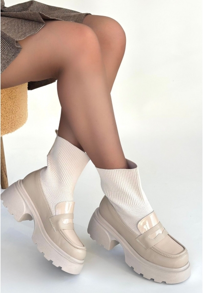 Kiya Bej Rugan Dolgu Topuk Oxford Ayakkabı