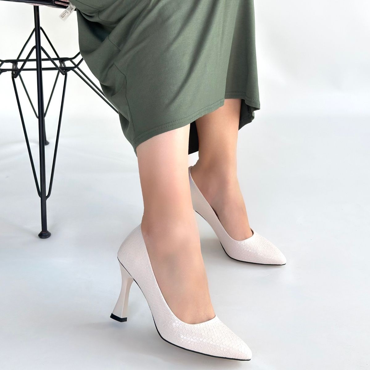 • Merio Bej Baskılı Rugan Topuklu Ayakkabı