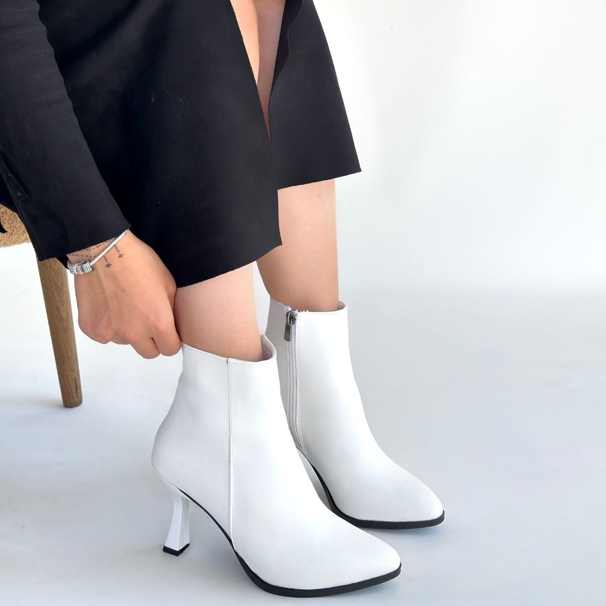 • Mişha Beyaz Cilt Topuklu Bot