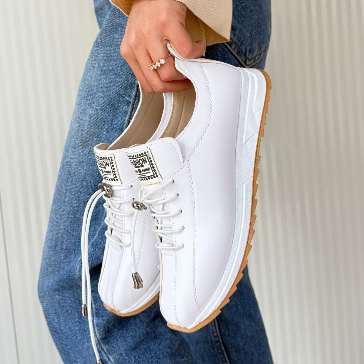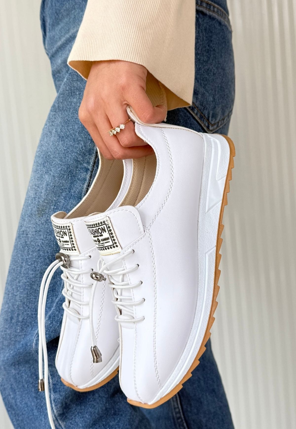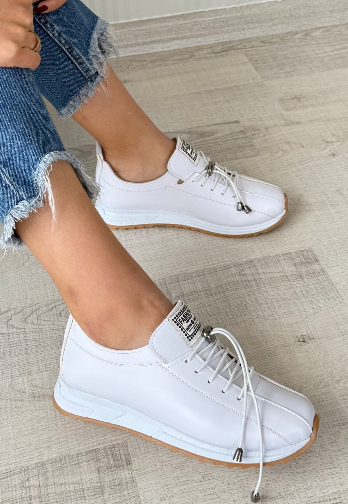 Monya Beyaz Cilt Bağcıklı Spor Ayakkabı