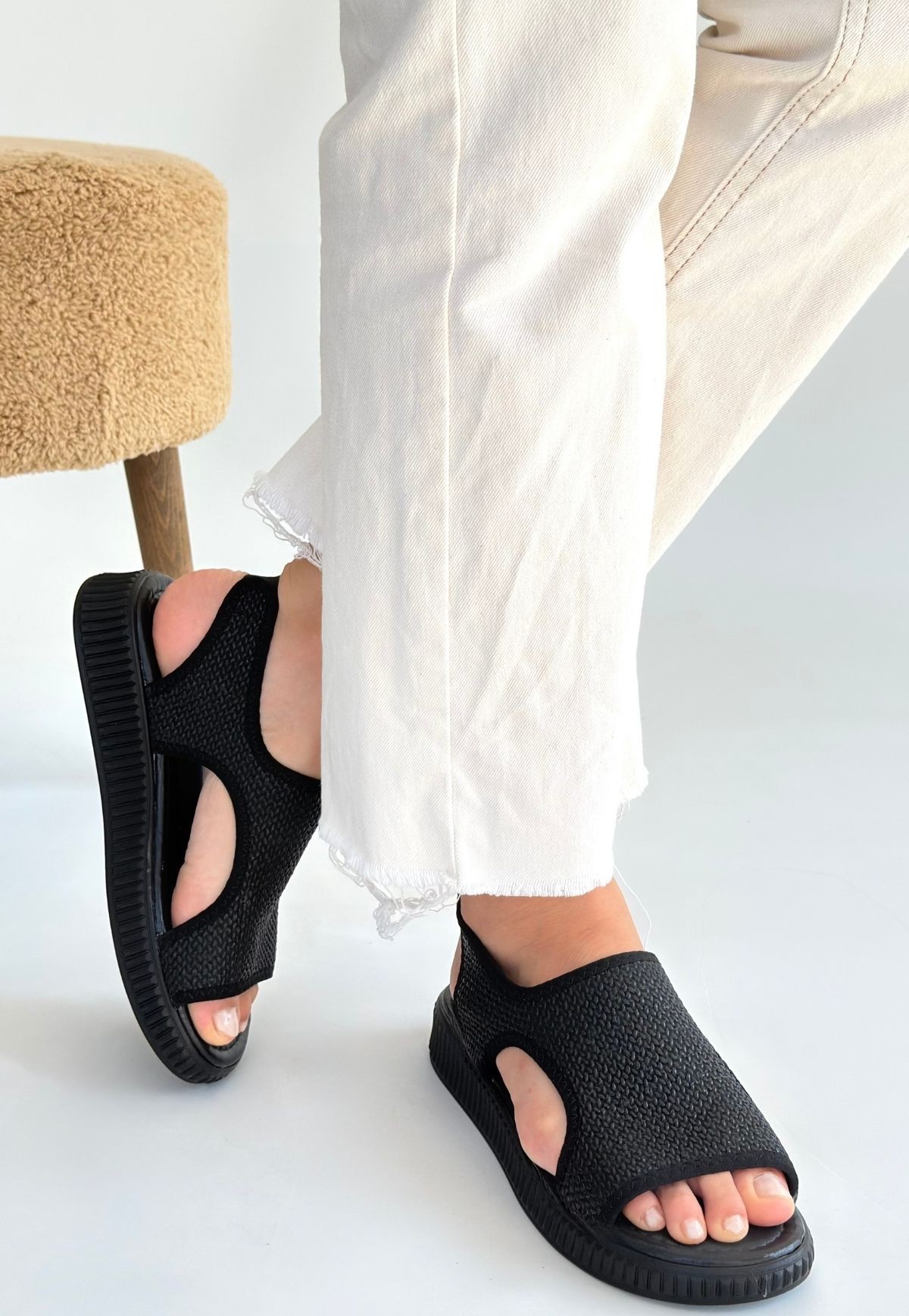 Sandalet Wayi Siyah Hasır Cilt Sandalet