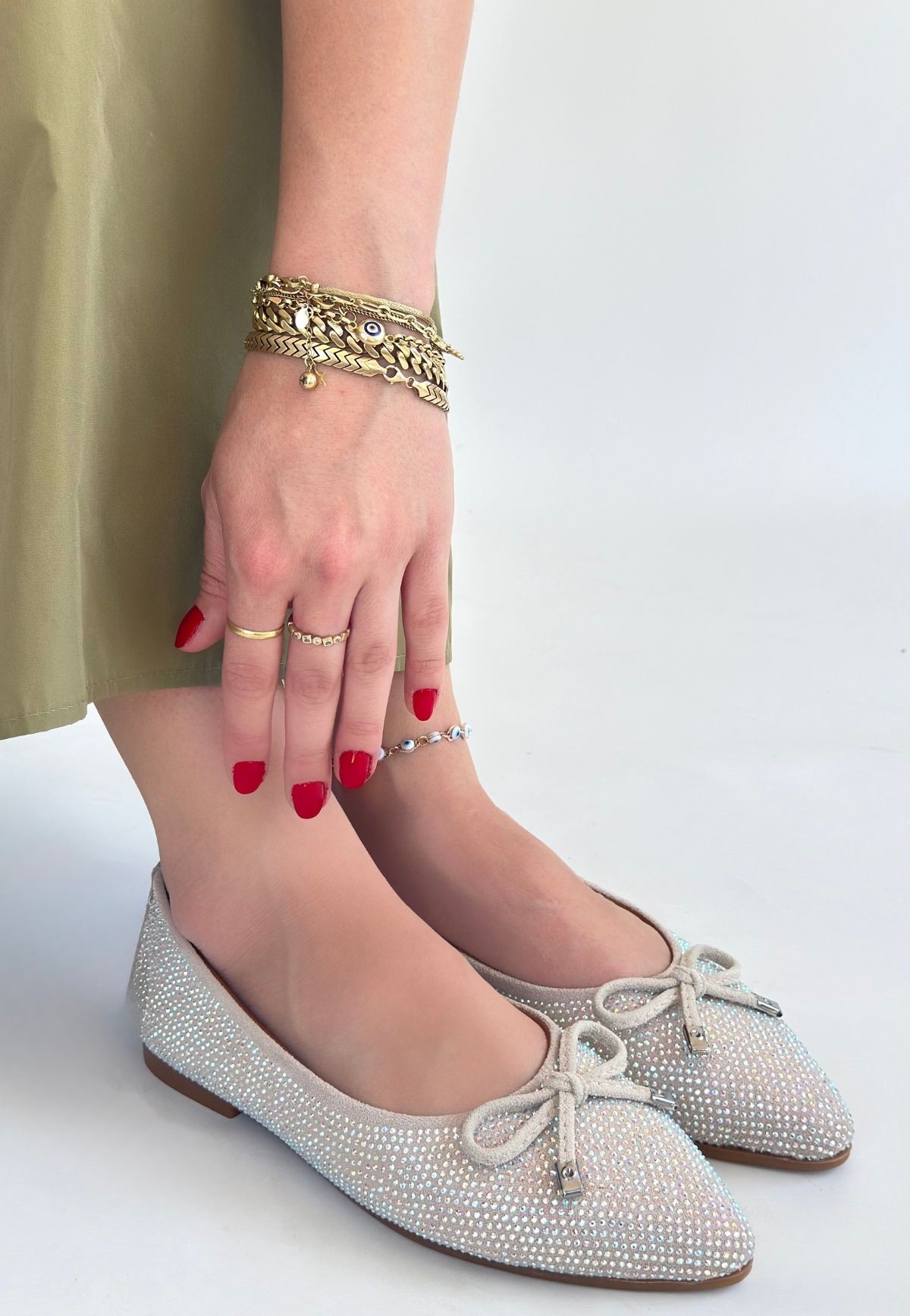 Sarra Bej Saten İşlemeli Babet Ayakkabı