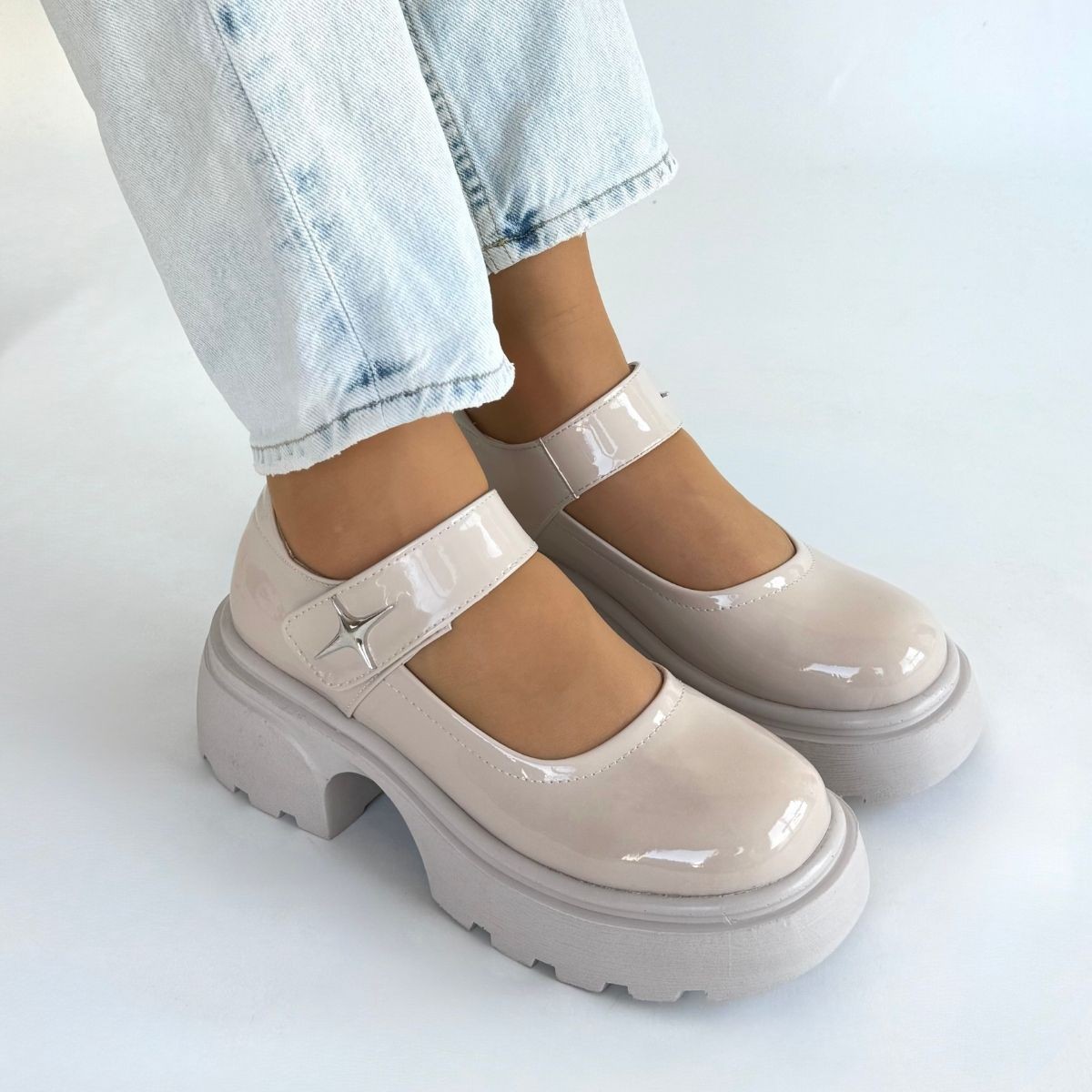 Siyat Bej Rugan Dolgu Topuk Oxford Ayakkabı
