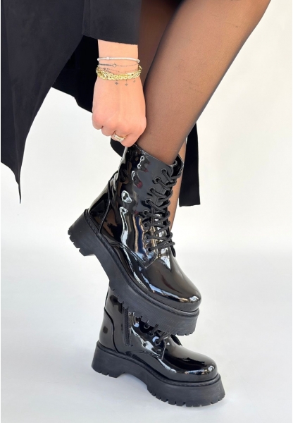 Toran Siyah Rugan Siyah Süet Detaylı Topuklu Ayakkabı